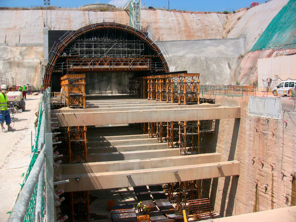 Tout comme le chariot de coffrage pour les tunnels de mines, celui-ci est fondé sur le système MK, ce qui confère au système une grande polyvalence et capacité porteuse tout en conservant de la mobilité lors des phases successives du processus de construction.