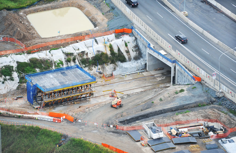 Il s'agit d'un chariot de coffrage mobile conçu pour la construction de tunnels en tranchée ouverte. Il réunit la structure de chevalement et le coffrage qui donne forme à la voute du tunnel.
