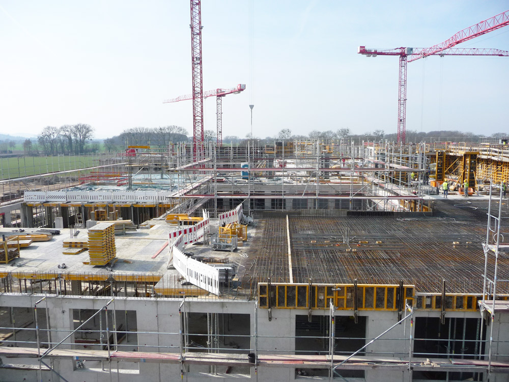 Les exigences difficiles de la conception ne pouvaient être remplies dans le calendrier requis que par le coffrage CC-4, qui contrairement aux systèmes de coffrage conventionnels peut être décoffré le troisième jour après la coulée et être prêt pour la section suivante le jour suivant.