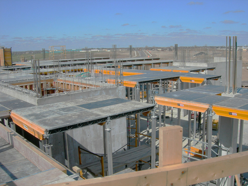 Pour réaliser ces installations modernes de façon sécuritaire, en temps requis et selon les budgets, un coffrage idéal polyvalent fut utilisé : le coffrage horizontal CC-4. La conception du projet comprenait des géométries de dalles complexes et de grandes distances entre les étages. Le système CC-4 a démontré son efficacité d’adaptation, pour ce type de structures de dalles de béton armé avec des têtes de colonnes à différentes hauteurs. Avec ce système, le niveau de production adéquat a pu être maintenu pour la réussite du projet.