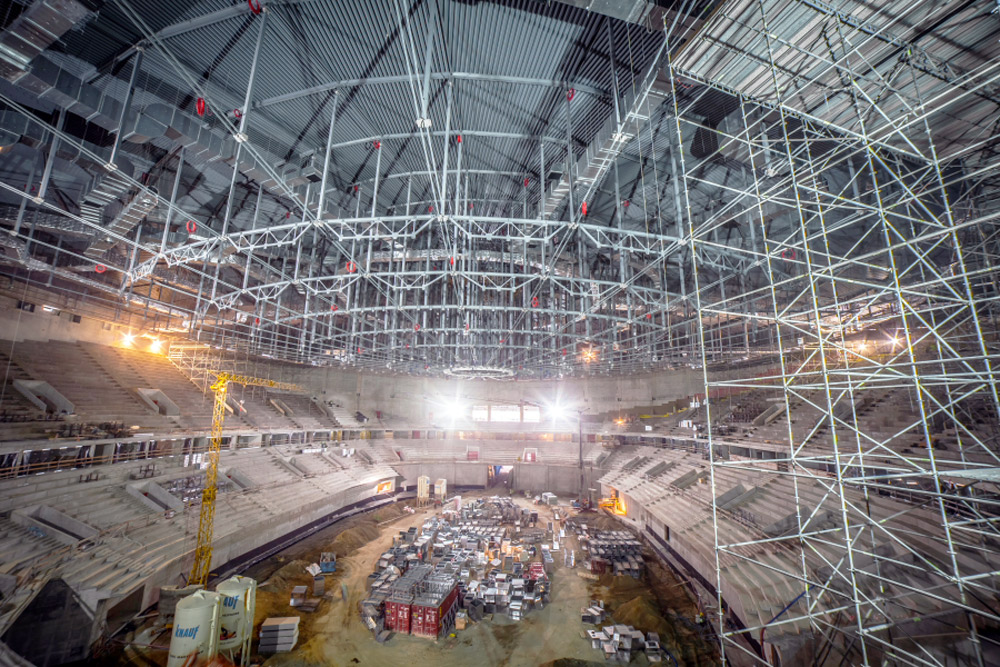 L’échafaudage omnidirectionnel BRIO a été utilisé au chantier pour bâtir les tours mobiles utilisées pour le montage des barres d’armature. Les échafauds BRIO ont aussi été utilisées pour bâtir une plate-forme de travail s’étendant sur 70 mètres et d’une surface utile de 670 m² utilisée pour installer les systèmes de climatisation et chauffage des gradins à l’intérieur de l’enceinte.