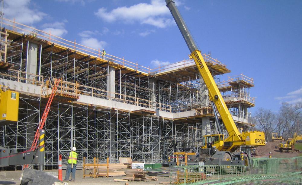Le coffrage MEGAFORM à liaisons rapides et le chevalement T-60 à érection rapide utilisés par les équipes de service et d’ingénierie créa la combinaison idéale pour réussir le tour de force mandaté par le client.