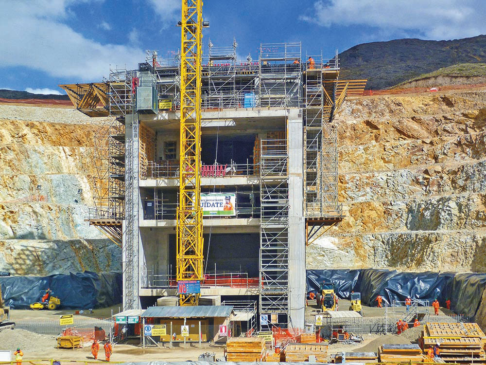 ULMA a fourni une solution intégrale pour le coffrage et les échafaudages pour couvrir la construction des infrastructures, des bâtiments de traitement, des broyeuses, des tunnels d’accès et des tunnels de récupération, entre autres.