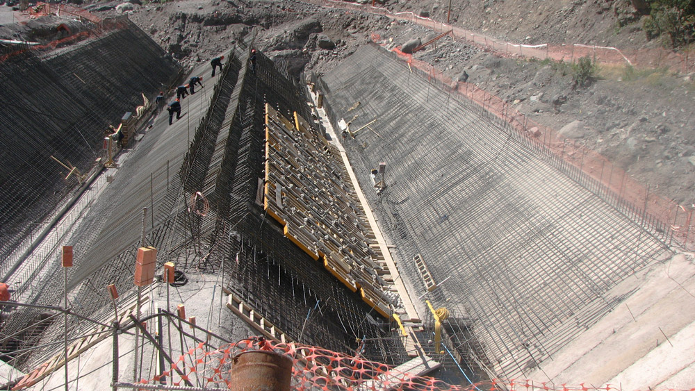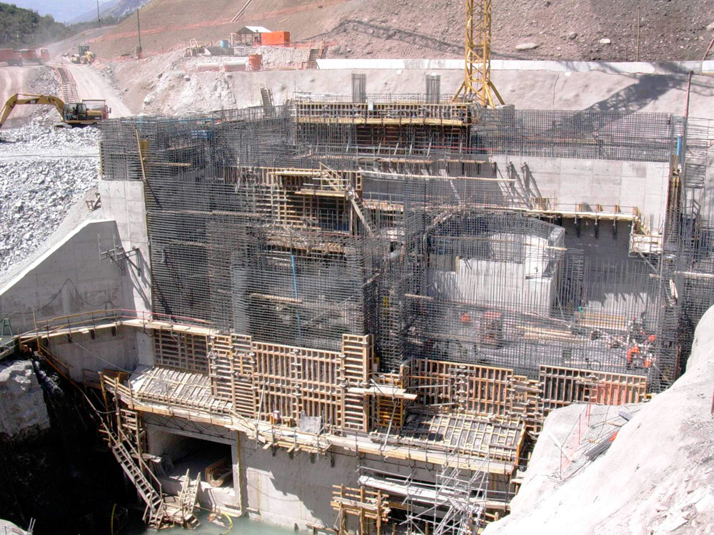 Le projet comprend la construction de plusieurs structures: salle des machines, salle des vannes, tunnels, réservoir… pour lesquels plus de 100 000 cubes de béton ont été utilisés.