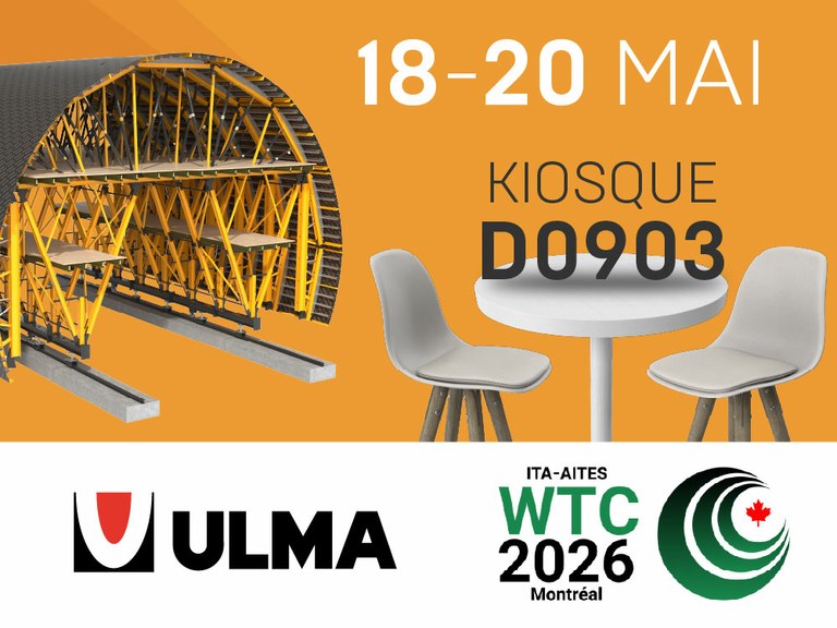 ULMA Construction Systems Canada Inc. annonce sa participation à titre d’exposant au Congrès mondial des tunnels de l’ITA World Tunnel Congress (WTC 2026). L’exposition se tiendra du 18 au 20 mai 2026 au Palais des congrès de Montréal, au centre-ville de Montréal (Québec, Canada).